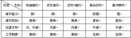 清灰方式是決定袋式除塵器性能的一個重要因素。以清灰方式對袋式除塵器進行分類,基本型式主要有:機械振打清灰方式、反吹清灰方式反吹、振打聯(lián)合清灰方式、脈動反吹清灰方式、脈沖噴吹清灰方式。低壓脈沖袋式除塵器屬于脈沖噴吹清灰方式。